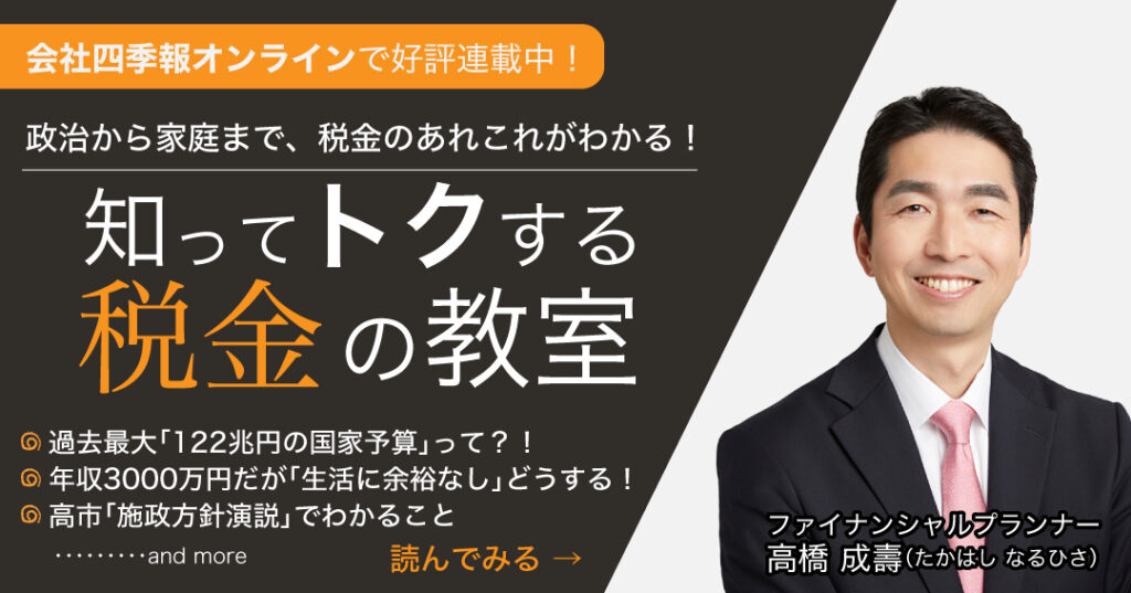 投資専門誌会社四季報のオンラインで「お金を殖やすキホンのキ」「知ってトクする税金の教室」「FPはミタ!」など2020年から継続して連載しています。